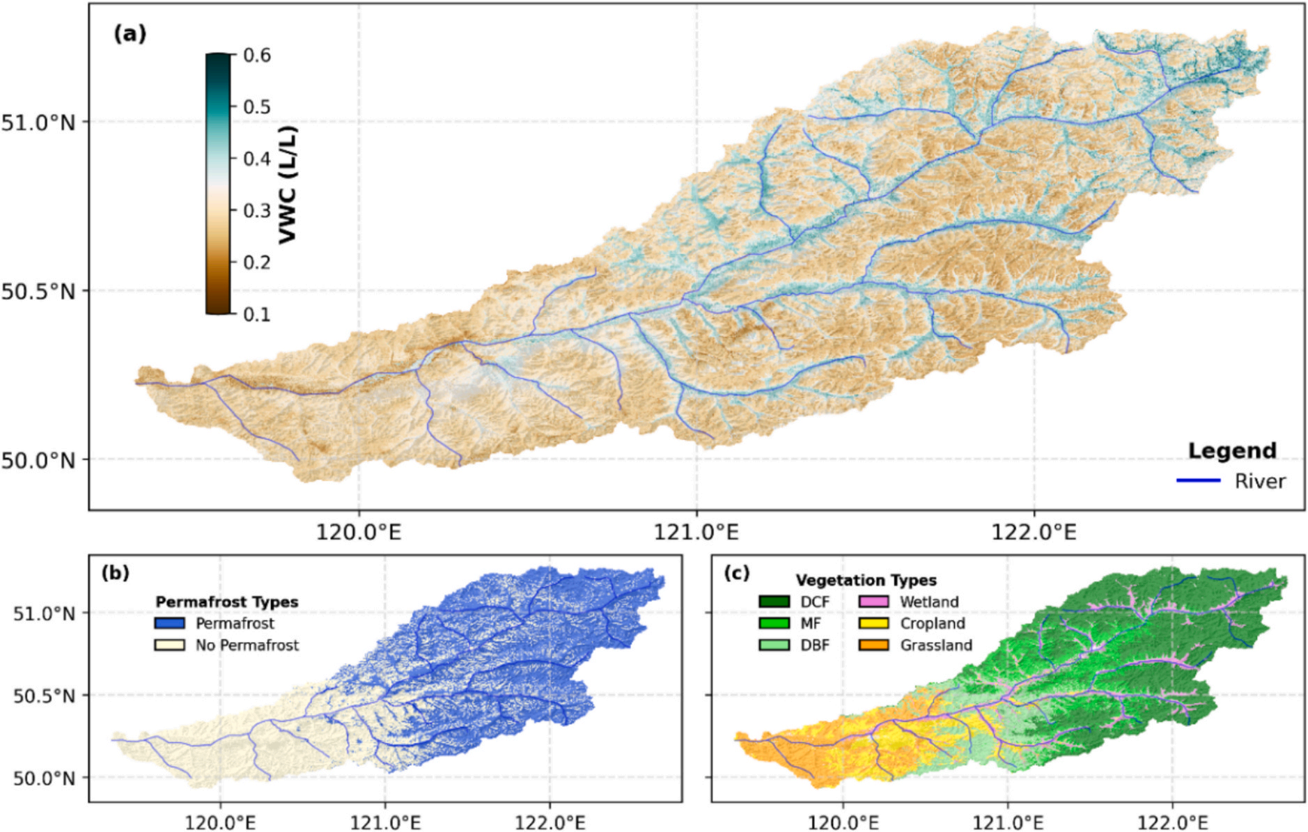 全流域高分辨率根区土壤水分、多年冻土和植被类型分布图
